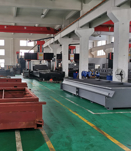 本公司設備精良,技術力量雄厚,擁有10多臺數(shù)控定梁/動梁龍門加工中心、臥式加工中心等,加工范圍從3米X2.4米至10米X4.2米。